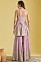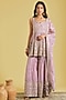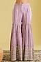 Featuring a lilac kurta in tissue base with floral jaal, zari and resham embellishment. It is paired with a gharara and a dupatta. Accentuate it with statement jhumkas and embellished juttis for a graceful festive look, perfect for wedding functions or cultural celebrations.