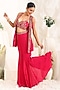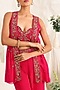Featuring a magenta jacket in georgette base with dabka, sequins and cutdana hand embellishments. It is paired with a choli and sharara pants. Accentuate it with dangler earrings and heels for a festive occasion, reception, sangeet or wedding ceremony.