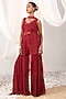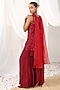 Featuring a maroon peplum in georgette base with cutwork and hand embroidery. It is paired with sharara pants and a net dupatta. Accentuate it with dangler earrings and heels for a festive occasion, sangeet or wedding ceremony.