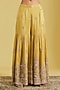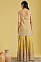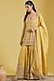 Featuring a mustard kurta in tissue base with floral, resham and sequins embellishment. It is paired with an embellished gharara and a dupatta. Accentuate it with statement jhumkas and embellished juttis for a graceful festive look, perfect for wedding functions or cultural celebrations.