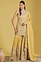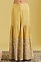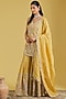 Featuring a mustard kurta in tissue base with resham, cutdana jaal and sequins embellishment. It is paired with an embellished gharara and a dupatta. Accentuate it with statement jhumkas and embellished juttis for a graceful festive look, perfect for wedding functions or cultural celebrations.