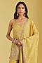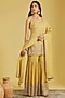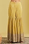 Featuring a mustard kurta in tissue base with patra, zari and bead embroidery. It is paired with an embroidered gharara and a dupatta. Accentuate it with statement jhumkas and embellished juttis for a graceful festive look, perfect for wedding functions or cultural celebrations.