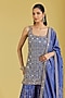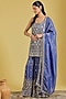 Featuring a navy blue kurta in georgette base with embroidery. It is paired with an embroidered gharara and a dupatta. Accentuate it with statement jhumkas and embellished juttis for a graceful festive look, perfect for wedding functions or cultural celebrations.