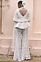 Featuring a pastel ivory peplum kurta in net base with floral and bead embroidery. It is paired with sharara pants and a dupatta. Style it with zircon jewellery, block heels and an embellished clutch for a festive, sangeet or engagement ceremony.