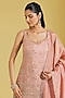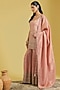 Featuring a peach kurta in tissue base with patra, zari and bead embroidery. It is paired with an embroidered gharara and a dupatta. Accentuate it with statement jhumkas and embellished juttis for a graceful festive look, perfect for wedding functions or cultural celebrations.