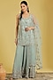 Featuring a pista kurta in net and georgette base with floral jaal and resham embroidery. It is paired with an embroidered sharara and a dupatta. Accentuate it with dangler earrings and heels for festive ceremonies.