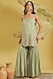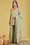 Featuring a pista kurta in tissue base with embroidery. It is paired with an embroidered gharara and a dupatta. Accentuate it with statement jhumkas and embellished juttis for a graceful festive look, perfect for wedding functions or cultural celebrations.