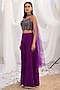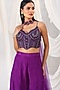 Featuring a purple choli in net base with sequins and cutdana hand embellishments. It is paired with silk sharara pants and a net dupatta. Accentuate it with dangler earrings and heels for a festive occasion, reception, sangeet or wedding ceremony.