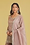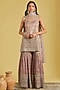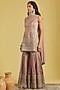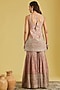 Featuring a rose gold kurta in tissue base with embroidery. It is paired with an embroidered gharara and a dupatta. Accentuate it with statement jhumkas and embellished juttis for a graceful festive look, perfect for wedding functions or cultural celebrations.