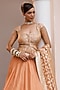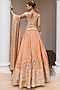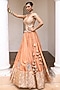 Featuring a rust lehenga in jacquard, silk jacquard and tissue base with jaal embellishments. It is paired with an embellished blouse and a dupatta. Style it with zircon jewellery, block heels and an embellished clutch for wedding, cocktail, sangeet or engagement ceremonies.