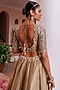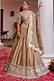 Featuring a sage green lehenga in tissue base with floral and mirror embroidery. It is paired with an embroidered blouse and a dupatta. Style it with zircon jewellery, block heels and an embellished clutch for wedding, cocktail, sangeet or engagement ceremonies.