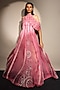 Featuring a candy pink anarkali in satin organza base with embroidery. It is paired with an embroidered cape. Style this opulent set with chandbalis and a sleek clutch for modern elegance. Perfect for glamorous sangeets, lavish receptions, and festive occasions.