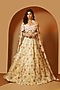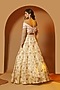 Featuring an ecru lehenga in satin silk organza base with floral print and sequins embellishments. It is paired with a matching silk chanderi draped blouse and a silk organza dupatta.