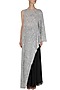This set features a grey and black textured asymmetrical top in cotton base paired with black georgette sharara pants.