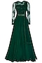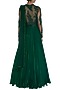 Featuring a green anarkali in flat chiffon base with sequins, swarovski, dori, beads and kardhana embroidery. It is paired with a matching dupatta in net base and belt.