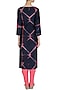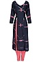 This set features a navy blue and pink tye and dye chanderi kurta paired with pink georgette dhoti pants.