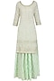 Featuring a pista green kurta in sequins and thread embroidered on chanderi base. It is paired with pista green gotapaati sharara pants in cotton and pista green dupatta with embroidery.