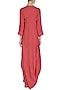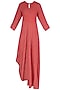 Featuring a red and white cotton textured drape dress with asymmetrical cowl drape detailing around the hem.