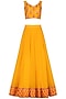 Yellow embroidered pleated lehenga set