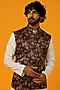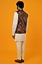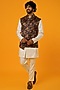 Featuring a multi-coloured bundi jacket in soft silk base. Perfect wear for any festive occasion or pooja ceremony.