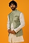 Featuring a pistachio bundi jacket in cotton base. This contains one piece only.