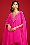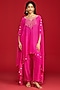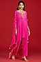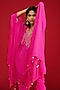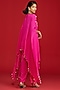 Featuring a hot pink cape in crepe base with hand embroidery. It is paired with straight pants. Accentuate it with polki earrings and mules for festive gatherings, sangeet ceremony or daytime functions.