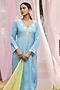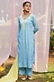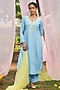 Featuring an ice blue kurta in habutai silk base with cutdana and moti hand embroidery. It is paired with straight pants and a yellow organza dupatta. Accentuate it with statement jewellery and heels for a festive occasion or pooja ceremony.