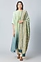 Olive Pista Green Pure Silk Ombre Asymmetrical Kurta With Dupatta
