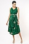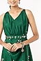 Featuring a bottle green draped cowl dress in dola silk base with hand embroidery. It is paired with a matching belt.