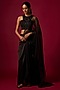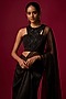 Featuring a black draped skirt saree in satin base. It is paired with a suiting embroidered bustier and an organza pallu having crystal hangings and embroidery. Accentuate it with dangler earrings and strappy heels for a sangeet, wedding or cocktail soirees.