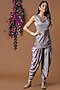Featuring a coffee brown short kurta in milano satin base with mukaish embroidery. It is paired with matching draped dhoti pants.
