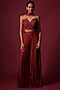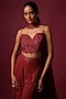 Featuring a deep red bustier in georgette base with embroidery. It is paired with kalidar pants having sequins and bead embroidery, including an embroidered choker dupatta. Accentuate it with dangler earrings and strappy heels for a sangeet, wedding or engagement ceremony.