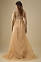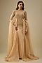 Gold Net & Organza Sequins Embroidered Gown With Trail