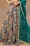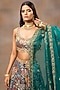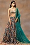 Featuring a green lehenga in crepe base with floral print and hand embroidery. It is paired with a choli and an embroidered organza dupatta. Style this set with statement earrings and block heels for weddings or mehendi ceremonies.
