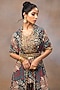 Featuring a green kurta in crepe base with gold embroidery and floral print. It is paired with sharara pants, an embroidered belt, and an embellished cape. Style this set with statement earrings and block heels for festive or pre-wedding occasions.