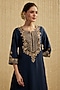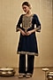 Featuring a navy blue kurta in silk chanderi base with embroidery. It is paired with pants. Accentuate it with statement earrings and juttis for a festive look.