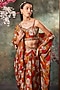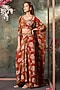 Orange & Red Crepe Floral Printed Draped Skirt Set