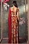 Orange & Red Crepe Floral Printed Draped Skirt Set