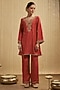 Featuring an orange kurta in silk chanderi base with embroidery. It is paired with pants. Accentuate it with statement earrings and juttis for a festive look.