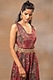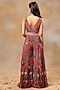 Featuring a pink jumpsuit in crepe base with floral print and gold floral motifs detail. It is paired with an embroidered belt. Style this set with statement earrings and block heels for festive or pre-wedding occasions.