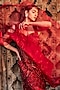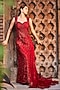 Featuring a red gown in net and organza base with embroidery, including a detachable embellished trail.