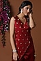 Featuring a red overlapped kurta in milano satin base with mukaish embroidery. It is paired with straight pants.