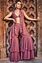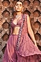 Featuring a rose pink jacket in georgette base with embroidery. It is paired with a matching top and sharara pants.