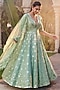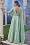Featuring a sea green anarkali in dupion crepe and net base with mirror and thread embroidery. It is paired with a matching dupatta.