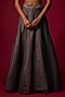 Featuring a steel grey lehenga in organza base. It is paired with an embroidered choli and an embroidered choker dupatta. Accentuate it with dangler earrings and strappy heels for a sangeet, wedding or cocktail soirees.