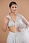 Featuring a powder blue kalidar lehenga in silk chanderi base with zari, maal, cutdana and jaal hand embroidery. It is paired with a matching blouse having a cut-out back and an organza dupatta.