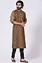 Featuring a copper and black kurta in cotton silk blend base with laser cut detailing. It is paired with contrasting pajama pants.