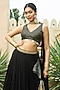 Featuring a black lehenga for girls in georgette base with embroidery. It is paired with an embroidered blouse having a v-neckline and a choker dupatta. Style it with sandals and hair accessories for a sangeet or wedding ceremony.