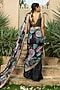 Black Georgette Floral Printed & Embroidered Saree Set For Girls