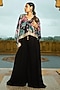 Featuring a black jumpsuit for girls in georgette base. It is paired with a floral printed cape. Accentuate it with matching hair accessories and sandals for a stylish ensemble, ideal for a festive occasion or wedding ceremony.